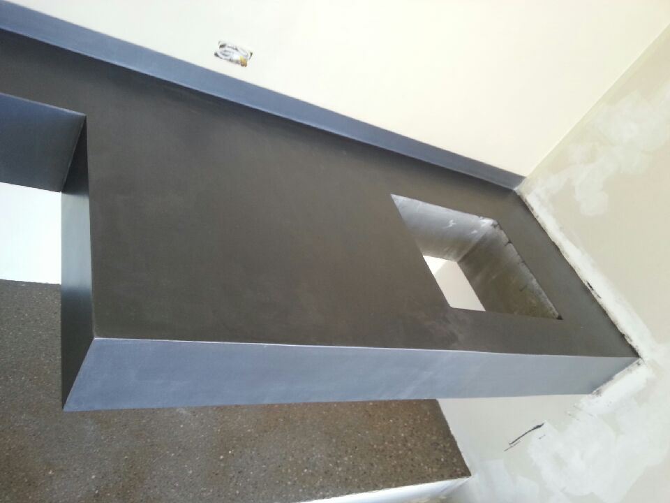 Za vinarja iz Goriških Brd izdelujemo med drugim tudi tankoslojno dekorativno betonsko oblogo po sistemu mikrocementa na točilnem pultu. Pri izvedbi smo morali paziti na muhasto vreme, saj nekaj ur po izvedbi ne sme deževati na izdelan sloj. Preplastitev smo izdelali v barvnem odtenku po želji naročnika in izdelano površino zaščitili z mat premazom.